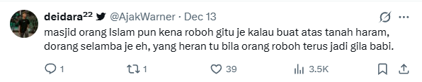 The temperature is rising in the comment section. Another netizen suggested the temple be demolished so that the Bangi Semenyih road can be widened.