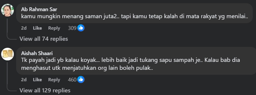 This led to her political enemies reminding Syerleena that she could eventually win millions in legal suit against her online perpetrators but “she still loses in the eyes of the rakyat who evaluate her”.