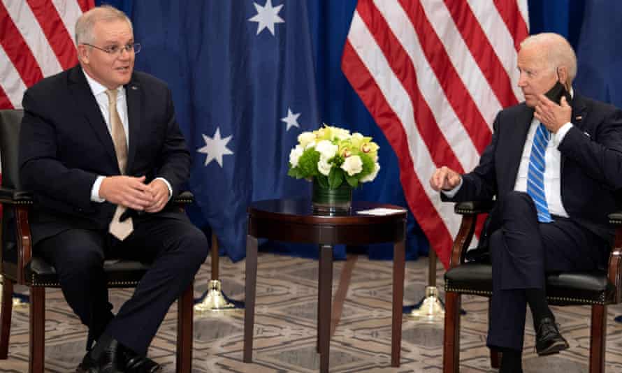 The prime minister Scott Morrison (left) meets with US president Joe Biden. There are concerns the Aukus deal between Australia, the US and the UK could embolden hostile nations to seek out highly enriched uranium. Photograph: Brendan Smialowski/AFP/Getty Images