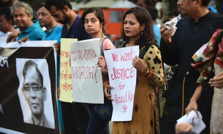 Demonstrators take to the streets in Dhaka after allegations of the desecration of an Islamic holy book in the city of Cumilla swept Bangladesh. Photograph: Harun-Or-Rashid/Eyepix Group/REX/Shutterstock