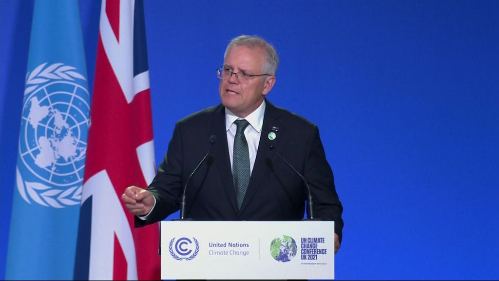 Mr Morrison used his speech in Scotland to reaffirm the Australian government's commitment to net zero emissions by 2050.