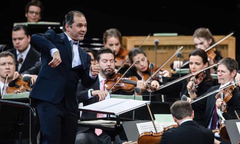 Russian Tugan Sokhiev conducts the Berlin Philharmonic orchestra in Germany in 2019. He has quit as the Bolshoi Theatre music director amid pressure to take a position on the conflict in Ukraine. Photograph: Clemens Bilan/EPA