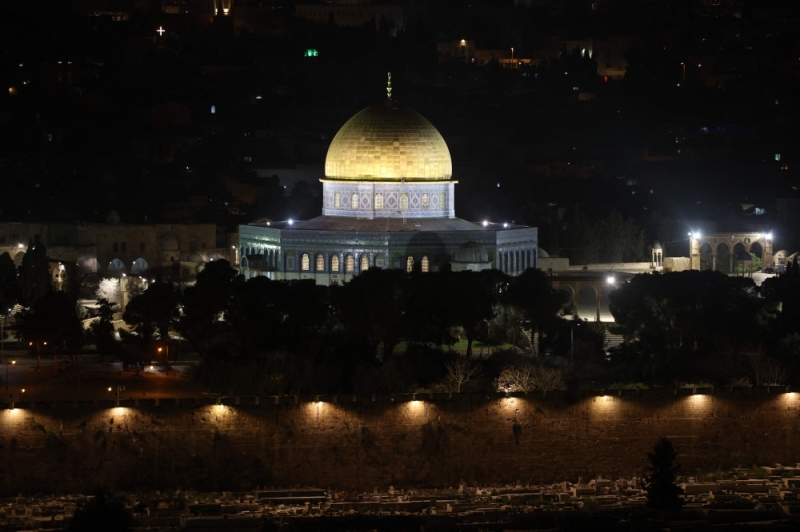This picture taken from the Mount of Olives shows the Dome of the Rock shrine in Jerusalem's Old City during clashes with Palestinians in Al-Aqsa Mosque on April 5, 2023. — AFP pic