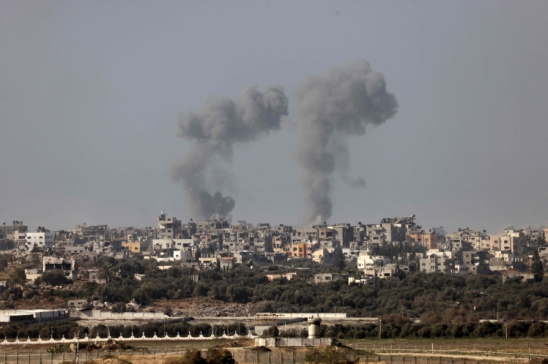 This picture taken from the Israeli border with the Gaza Strip shows smoke billowing over central Gaza following Israeli strikes on January 1, 2024, amid the ongoing battles between Israel and the militant Hamas group. — AFP pic