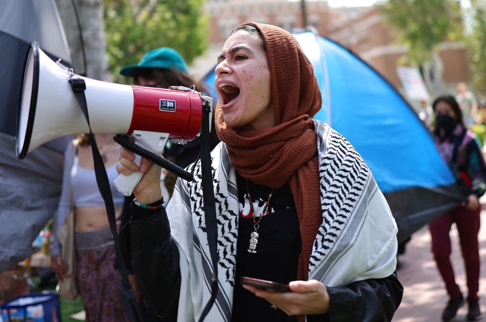 Pro-Palestine demonstrators march at an encampment in support of Gaza at the University of Southern California. — AFP pic