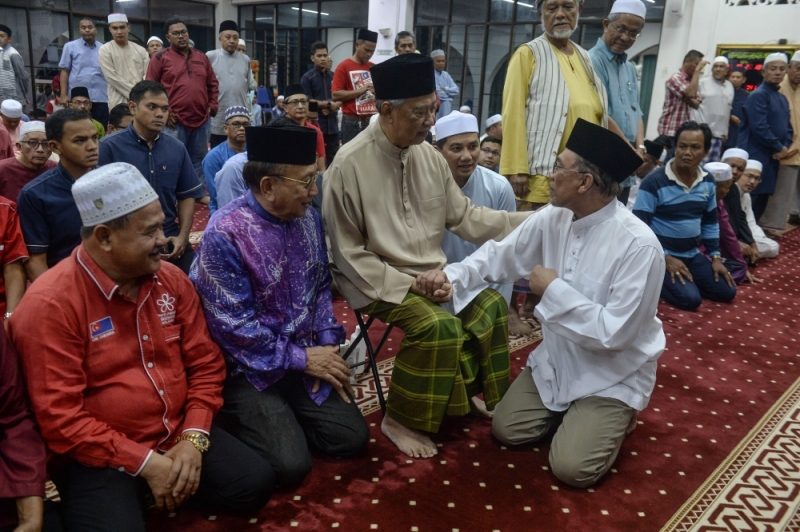 File picture of Datuk Seri Anwar Ibrahim and Tan Sri Muhyiddin Yassin during a special prayer at Bagan Pinang mosque in Port Dickson, October 11, 2018. Anwar and Muhyiddin announced today that they have agreed to cease their ongoing defamation lawsuits against each other. — Picture by Yusof Mat Isa
