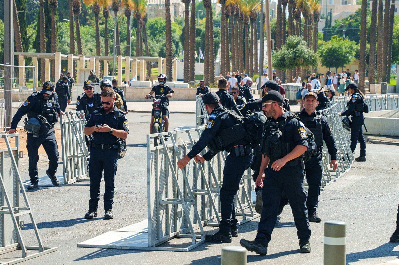 Authorities prepare for the march in Jerusalem on Wednesday.(ABC News: Haidarr Jones)