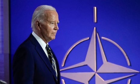 President Joe Biden walks during an event commemorating the 75th anniversary of Nato on 9 July. Photograph: Susan Walsh/AP