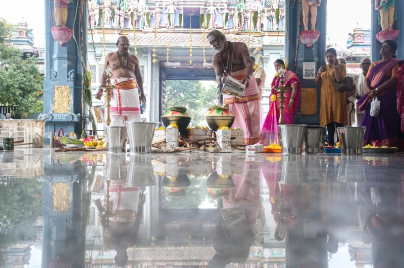 Hindus are seen offering prayers in conjunction with Ponggal at the Sri Subramaniar Temple at Gunung Cheroh in Ipoh, Perak on January 15, 2024. The MCCBCHST said all houses of worship are places of sanctity and should be respected. — Picture by Farhan Najib
