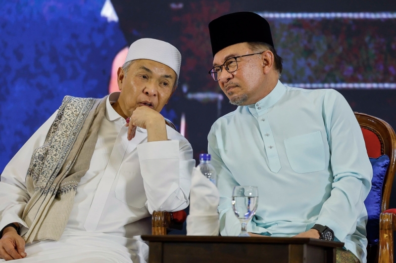 Prime Minister Datuk Seri Anwar Ibrahim, alongside Deputy Prime Minister Datuk Seri Ahmad Zahid Hamidi, attends the 24K Huffaz Gathering at the Federal Territory Mosque in Kuala Lumpur September 14, 2024. — Bernama pic