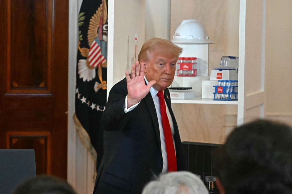 News that the US economy unexpectedly shrank amid the chaos of Trump’s tariffs did not stop his top team from heaping praise on the president at a meeting the day after his 100th day back in power. — AFP pic