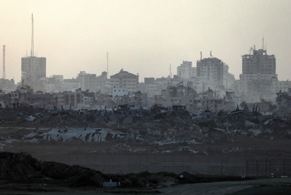 This picture taken from a position on the Israeli border with the Gaza Strip shows destroyed buildings in the embattled territory on Aug 27, 2025. — Bernama pic