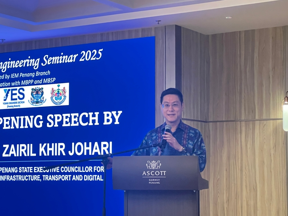 State infrastructure, transport and digital committee chairman Zairil Khir Johari officiates the opening of a geotechnical engineering seminar at Ascott Gurney Hotel. — Picture by Opalyn Mok