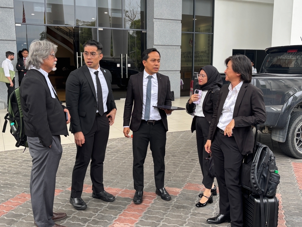 Lawyers involved in the inquest, including Joan Goh (right) and Shahlan Jufri (centre), seen outside the Kota Kinabalu Court Complex today. — Picture by Julia Chan