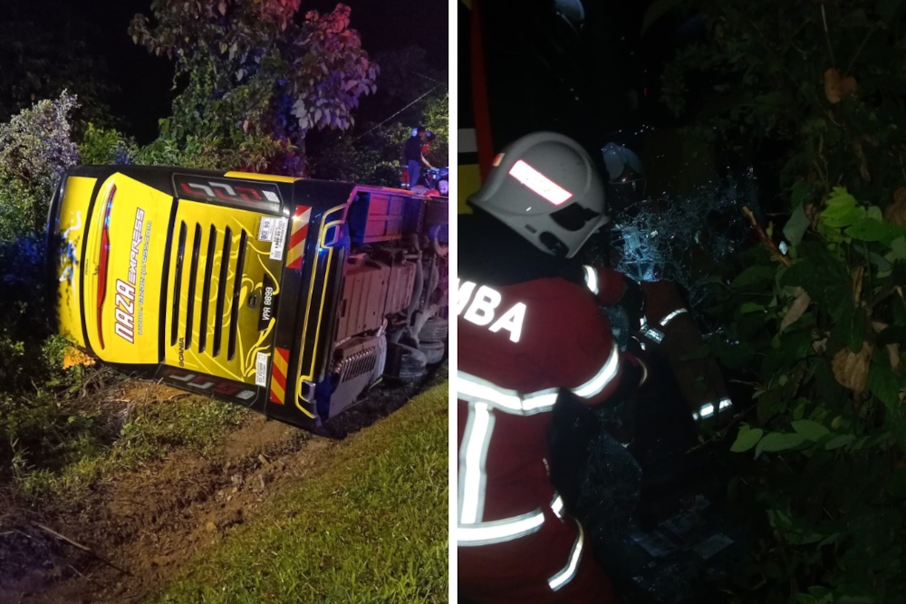 In Kelantan, express bus with 15 passengers overturns in Kuala Krai, two trapped