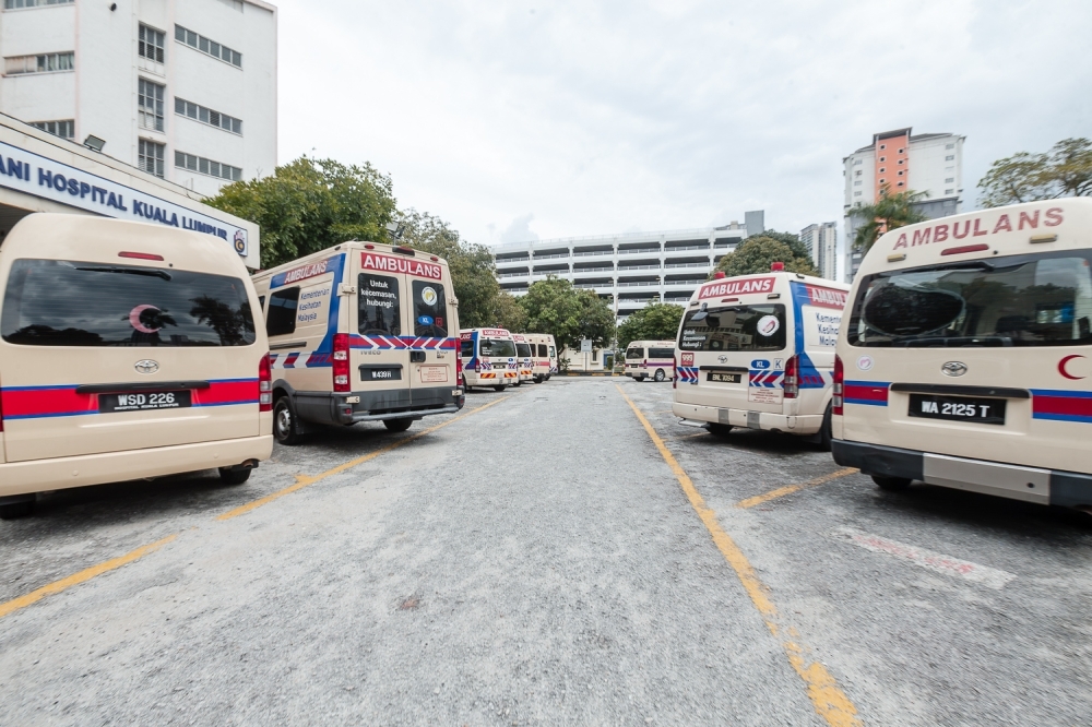 Ambulances are parked outside a hospital in Kuala Lumpur on January 22, 2025. — Picture by Raymond Manuel