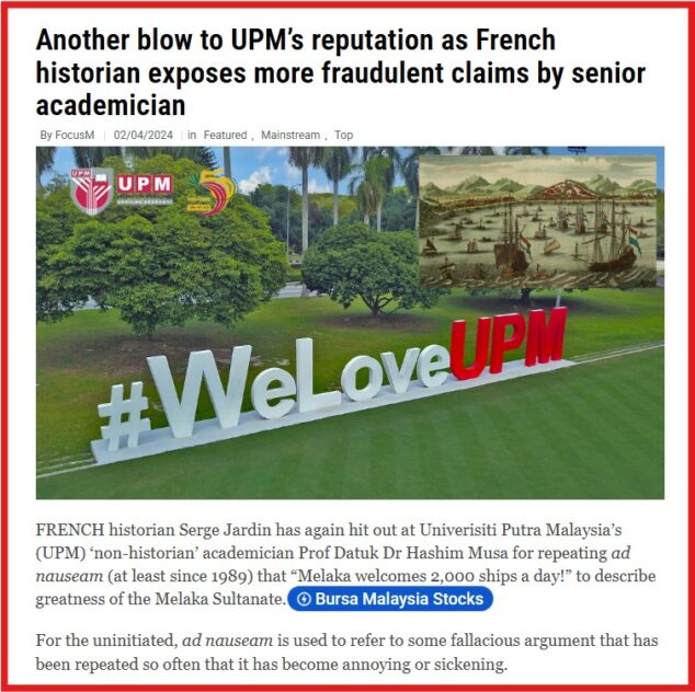 In case anyone unfamiliar with him, the Malaysia-based French historian is synonymous for being the whistle-blower on academics presenting misleading or erroneous findings, especially on the ancient Melaka Sultanate.