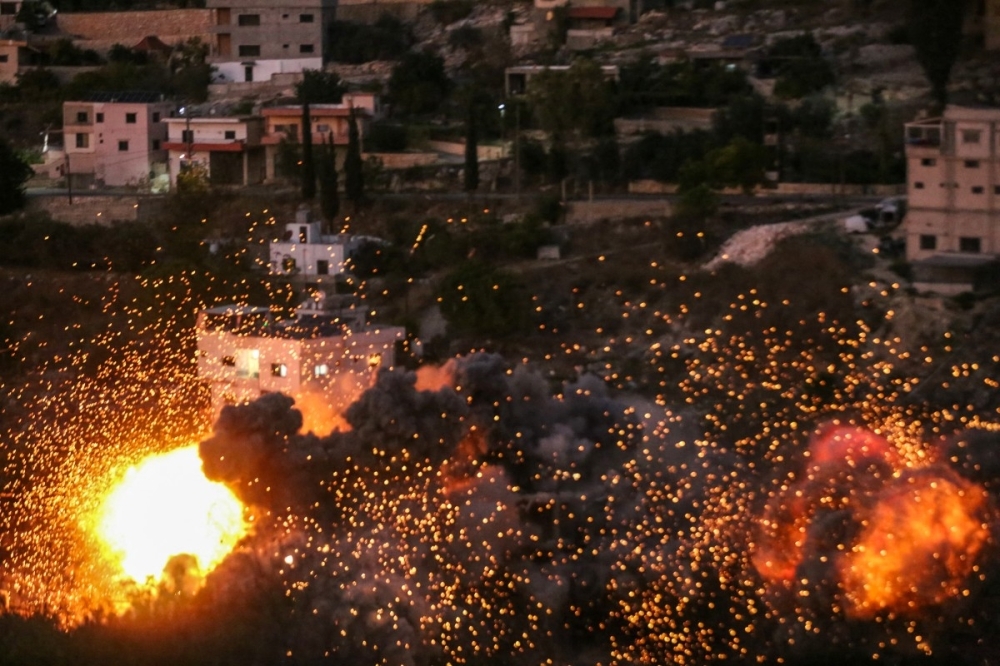 Flames and smoke erupted from the site of an Israeli airstrike that targeted a house in the southern Lebanese village of Tair Filsay on November 19, 2025. — AFP pic