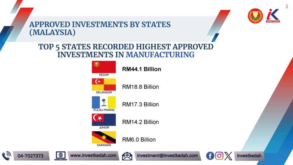 Kedah recorded RM4.2 bil in investments in 1Q 2025 with the manufacturing sector contributing the largest share at RM3.9 bil in investments.