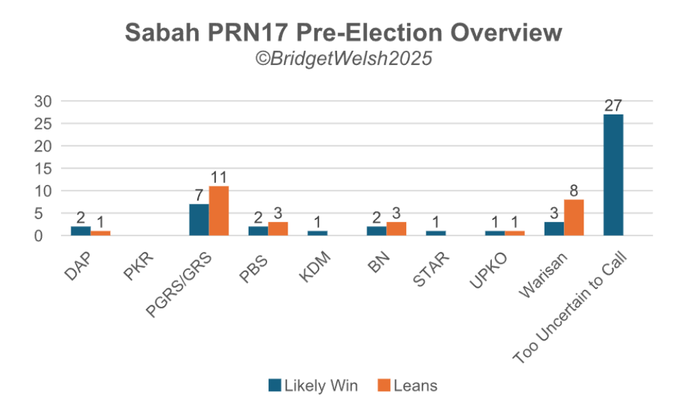 All of these parties should win at least one seat, with the exception of PN. PAS has a chance in both Karambunai and Balung, largely due to their social media and stealth (look like Sabahans, not traditional PAS members) campaigns.