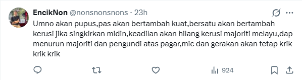 Then there was @nonsnonsnons with his grim prediction, stating that UMNO will become extinct, among many other things.