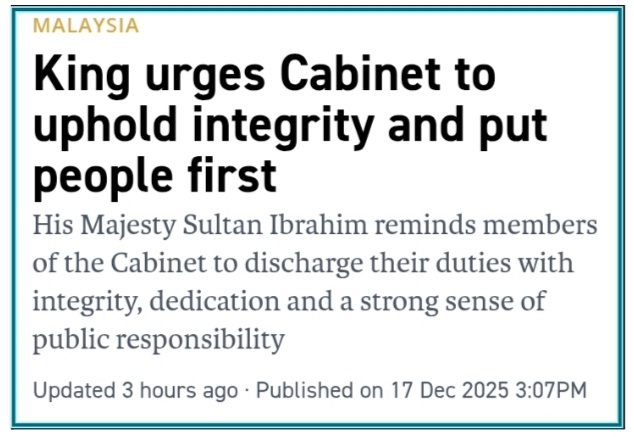 Most importantly though, didn't the appointments receive the blessings of the Agong Sultan Ibrahim who went on to remind the new ministers and deputies to prioritize the well-being of the people, national stability and economic prosperity in line with the principles of good governance? Did the no-nonsense king ever voice any objection?