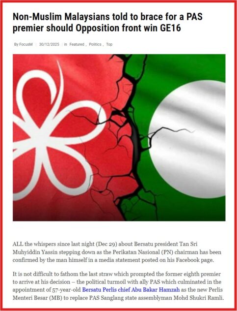 My point is that it may actually be better for PAS to come to power now while it is still pragmatic and constrained by the country’s plural composition rather than later – when it may defect to or be driven solely by the votes of the national majority. – Jan 2, 2026