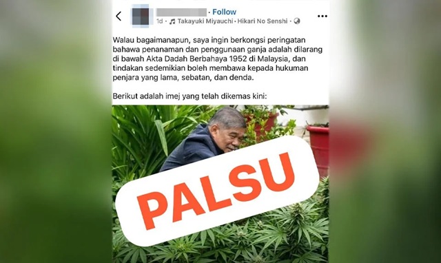 Imej manipulasi digital yang cuba mengaitkan Mohamad Sabu dengan ganja disahkan palsu. - Gambar Facebook Mohamad Sabu, 14 April, 2026