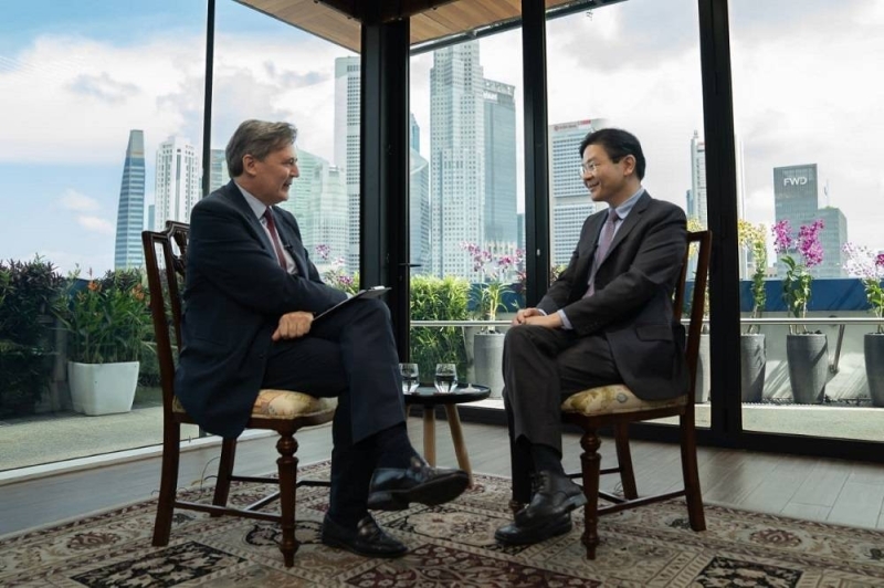 Deputy Prime Minister Lawrence Wong in an interview with Mr John Micklethwait, Bloomberg News editor-in-chief, on Aug 15. — Picture courtesy of Singapore Ministry of Finance via TODAY