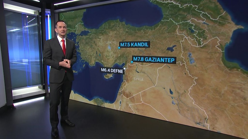 Türkiye's disaster management agency, AFAD, says the latest major quake was centred around the town of Defne, in Hatay province.(Reuters: Eloisa Lopez)
