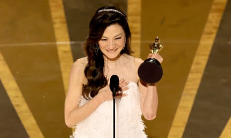 Michelle Yeoh accepts the Best Actress award for Everything Everywhere All at Once onstage during the 95th Annual Academy Awards in Hollywood, California. Photograph: Kevin Winter/Getty Images