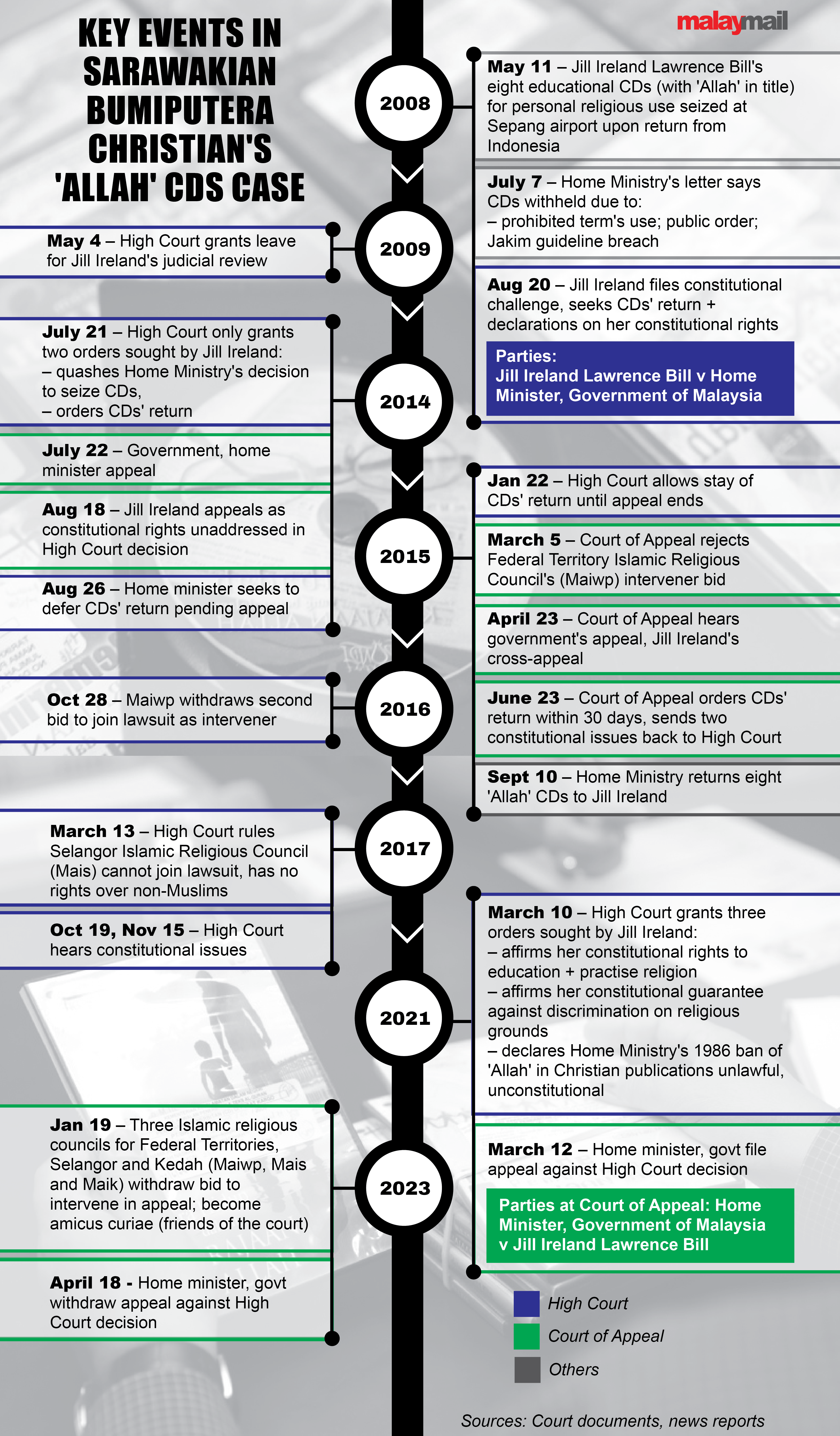 The move put an end to the 15-year-long legal saga that began when the government seized the Sarawak Bumiputera’s eight educational compact discs (CDs) containing the word “Allah”, the Arabic word for God, which were for her own use.