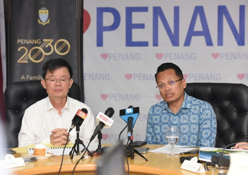 (From left) Penang Chief Minister Chow Kon Yeow and Minister of Natural Resources, Environment and Climate Change Nik Nazmi Nik Ahmad are seen during a press conference in Komtar November 8, 2023. — Picture by Opalyn Mok