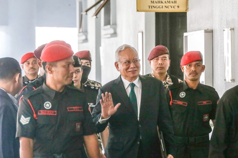 Former prime minister Datuk Seri Najib Razak arrives for the 1MDB trial at the Kuala Lumpur Court Complex. — Picture by Sayuti Zainudin