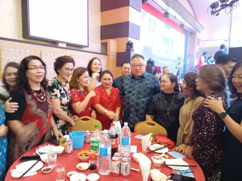 Tiong (centre) joins some guests in a photo-call during the gathering. — Borneo Post Online pic
