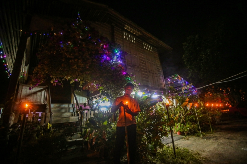 A man lights oil lamps at a kampung house in Kampung Ulu Chemor, Perak. — Picture by Farhan Najib