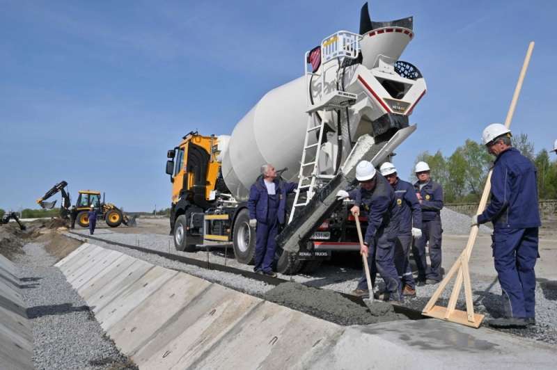 Workers pour concrete during preparatory activities before the construction of power units 5, 6 using the American Westinghouse technology at the Khmelnytsky Nuclear Power Plant (KhNPP) near Ukrainian city of Khmelnytsky on April 11, 2024. — AFP pic