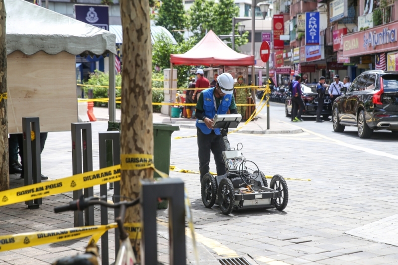 The Ground Penetrating Radar device being used for the land integrity assessment around the Jalan Masjid India sinkhole. — Bernama pic