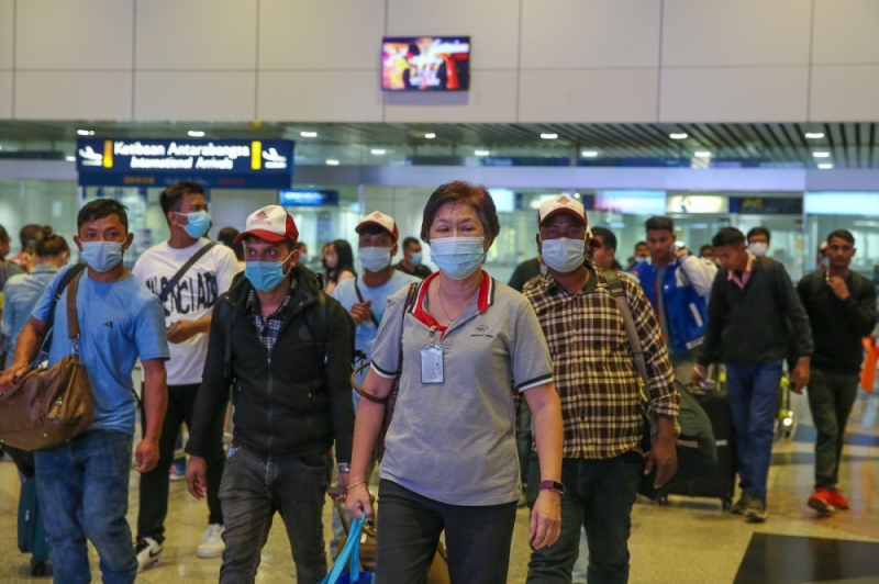 File picture of foreign workers arriving at Kuala Lumpur International Airport, January 10, 2023. MACC chief commissioner Tan Sri Azam Baki explained that foreigners, hailing from countries such as Myanmar, Bangladesh, Indonesia, India, Pakistan, and Nepal, are required to undergo inspection as outlined in Immigration Circular Number 4 (2021). — Picture by Yusof Mat Isa