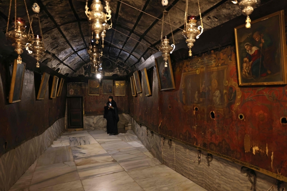 A priest walks in the Church of the Nativity in the biblical city of Bethlehem, in the occupied West Bank December 17, 2024. Violence across the Israeli-occupied West Bank has surged since the war in Gaza broke out on October 7 last year, but Bethlehem has remained largely quiet, even though the fighting has taken an overall toll on the now predominantly Muslim city. — AFP pic