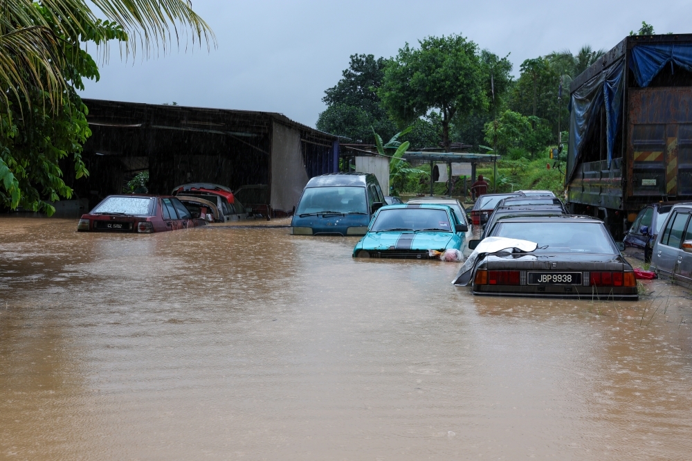 Partially submerged vehicles are seen in Kampung Pasir Tebrau near Johor Baru on March 20, 2025. — Bernama pic