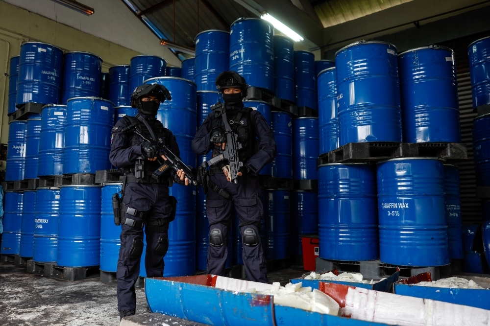 “Inspection of both containers found 83 blue drums labelled ‘Paraffin Wax 3-5 per cent’ containing compressed yellowish-white solids, suspected to be methamphetamine,” he told a press conference at the Port Klang police station today.