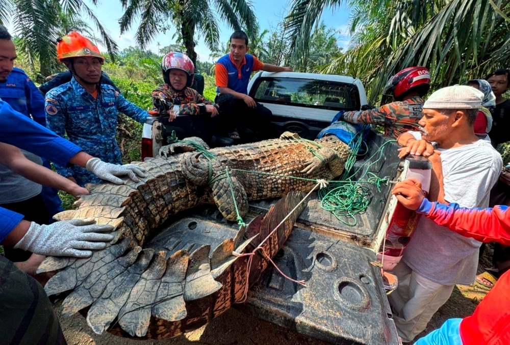 The first crocodile that entered the village this week was spotted on May 7, and weighed over 400 kg and was caught by firefighters with the assistance of villagers. — Bernama