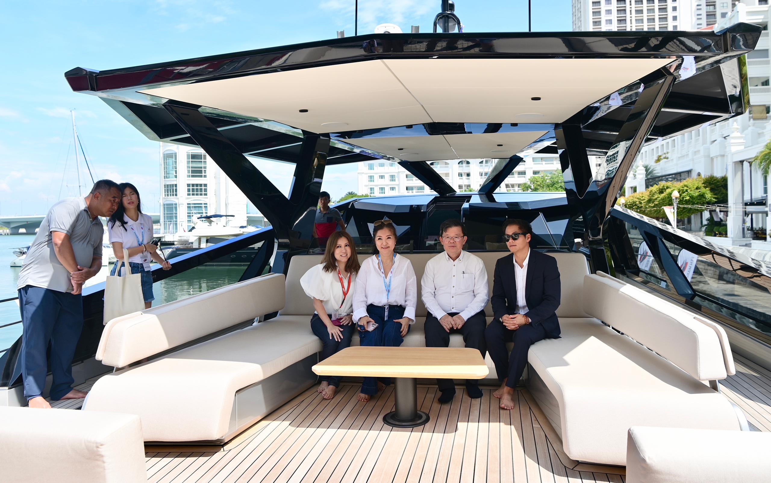 Penang Chief Minister Chow Kon Yeow (seated, middle) with representatives from Pen Marine Sdn Bhd in a yacht during his visit at at The Epitome of Luxury yacht event at Straits Quay Marina, Tg Tokong - Chief Minister's Office pic, May 18, 2025.
