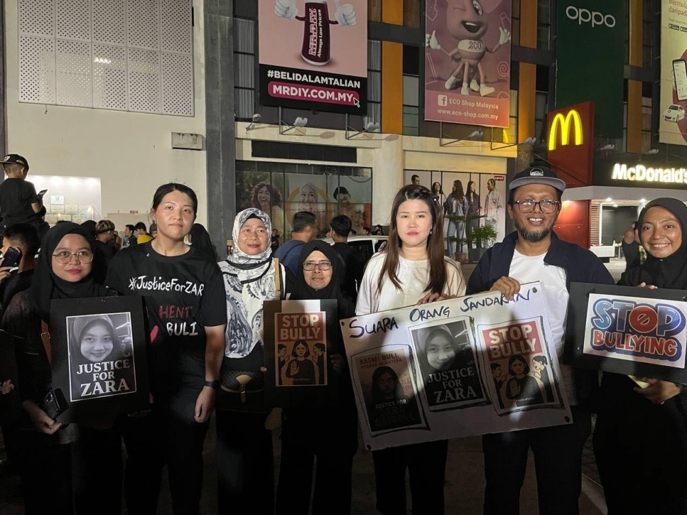In Tawau, crowds were seen gathered at the Chester Night Market roundabout, holding placards with slogans such as “Justice for Zara” and “Stop bullying.”