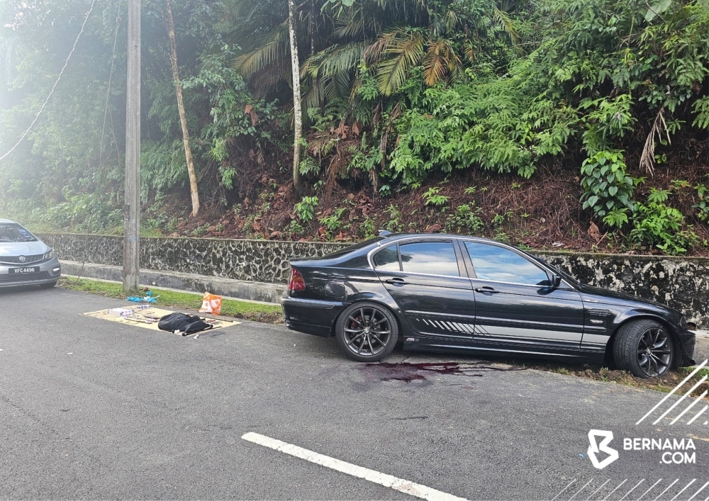 The suspect’s vehicle is seen at the scene of the shooting in Bukit Tunku, Kuala Lumpur, on Aug 6, 2025. — Bernama pic