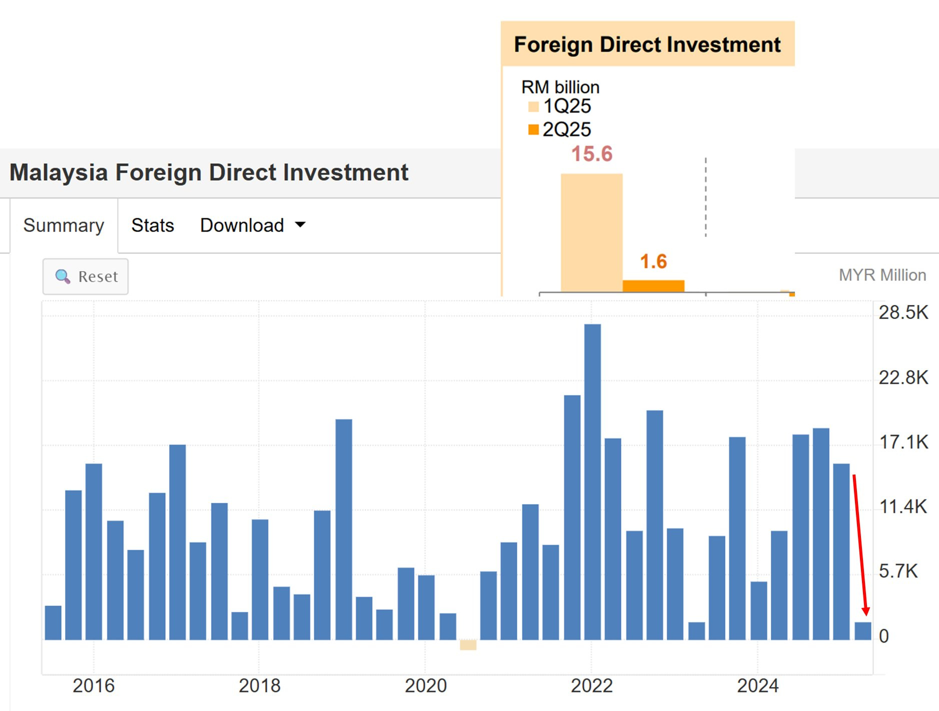 However, the FDI result for the 2nd quarter of 2025 was just RM 1.61 billion. That’s a massive drop from RM 9.59 billion in the first quarter of 2025.