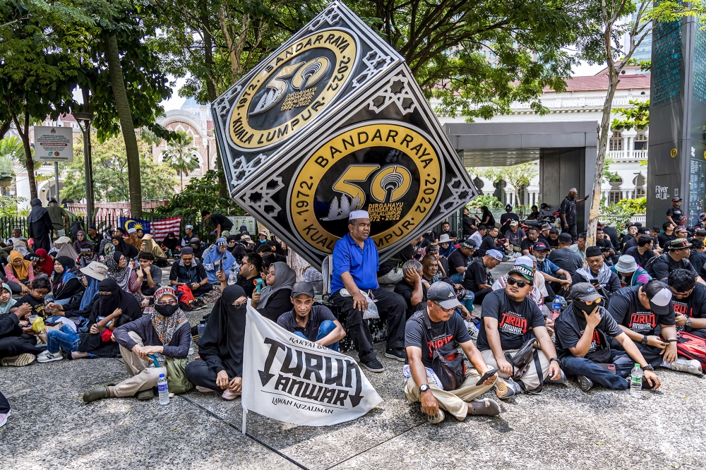 Protesters gather during the ‘Turun Anwar’ rally at Dataran Merdeka in Kuala Lumpur July 26, 2025. — Picture by Firdaus Latif