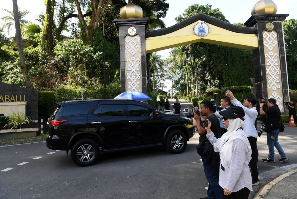 Members of the media gather at the entrance of Istana Seri Kinabalu today, ahead of the swearing-in ceremony of Sabah Cabinet members. — Bernama pic