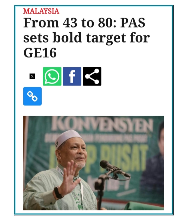 As PAS currently holds 43 seats, it's certainly not beyond the opposition PN coalition to capture Putrajaya with a “simple majority” especially if its main partner Bersatu performs well.